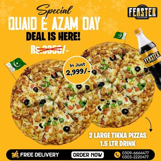 Craving a hot, cheesy slice of your favorite pizza? Feaster Pizza Sahiwal brings it straight to your doorstep, fresh and piping hot. From classic Margherita to loaded specialty pizzas, every order is prepared with the finest ingredients and baked to perfection. Whether itโs a quick snack, a family meal, or a party treat, we ensure your pizza arrives fast, fresh, and full of flavorย because nothing beats enjoying your favorite pizza without the wait!