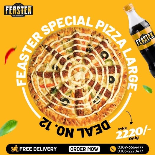 Every order at Feaster Pizza Sahiwal is prepared with attention, consistency, and love for food. Our goal is not just to serve a meal, but to create a memorable dining experience that brings comfort, joy, and bold taste to every customer.